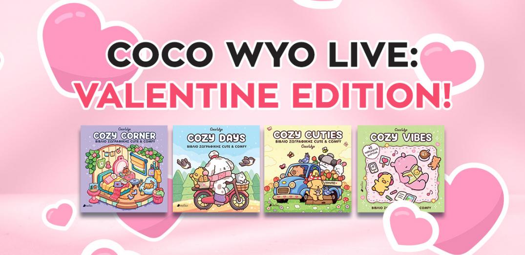 Η αγάπη φέτος φορά τα πιο ζωντανά της χρώματα και κάνει στάση στα Public! Η Coco Wyo προνόησε και έχει ετοιμάσει μοναδικά events για να απογειώσει τη διάθεση του Βαλεντίνου σου, της παρέας σου και φυσικά τη δική σου! Ως γνωστόν, η Coco Wyo «κρύβεται» πίσω από τη cozy coloring σειρά βιβλίων που ξετρελαίνει σε κάθε event μικρούς και μεγάλους. Αυτή τη φορά, επιστρέφει με μια διαφορετική εμπειρία: πιο δημιουργική, πιο εκφραστική και σίγουρα πιο... πολύχρωμη. Υπό τη καθοδήγηση της σκιτσογράφου Μαριλίνας Σκαρπέτα, θα έχεις την ευκαιρία να αφεθείς στη μαγεία του coloring, να πειραματιστείς με διάφορες αποχρώσεις και σχήματα και να ανακαλύψεις πώς η αγάπη μπορεί να “ζωντανέψει” μέσα από το χρώμα. Δεν χρειάζεται προηγούμενη εμπειρία· μόνο διάθεση για έκφραση και λίγη φαντασία.