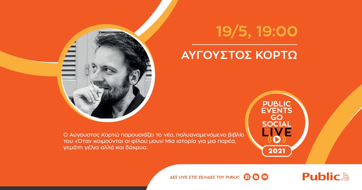 Tην Τετάρτη 19/5 στις 19:00, o Αύγουστος Κορτώ παρουσιάζει το νέο του βιβλίο «Όταν κοιμούνται οι φίλοι μου», που κυκλοφορεί από τις εκδόσεις Πατάκη.