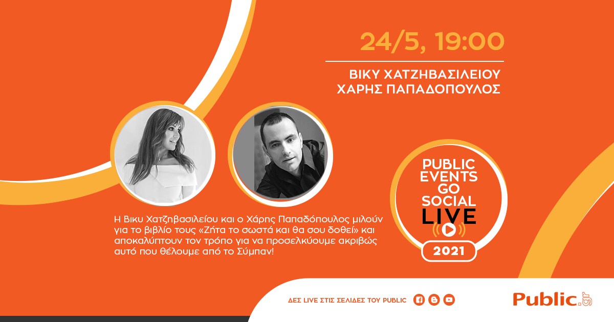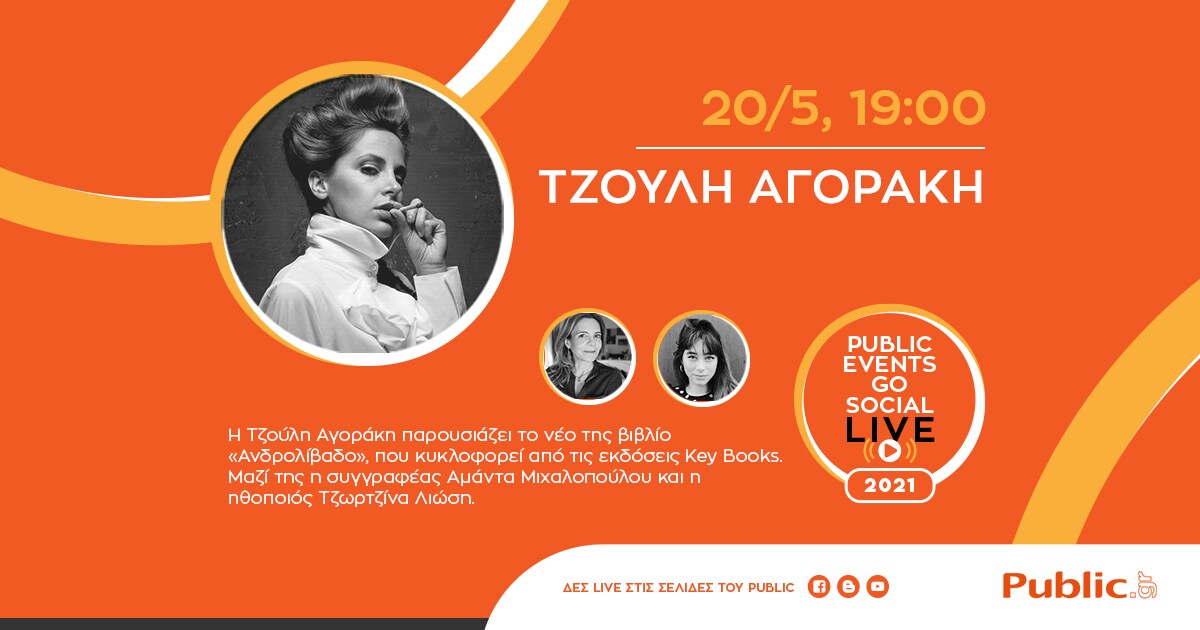 Μένουμε ασφαλείς και παρακολουθούμε εκδηλώσεις μέσα από τις σελίδες του Public στο Facebook και Youtube, που συνεχίζει να φιλοξενεί συγγραφείς και νέες κυκλοφορίες βιβλίων μέσα από την πρωτοποριακή υπηρεσία #PublicEventsGoSocial!
