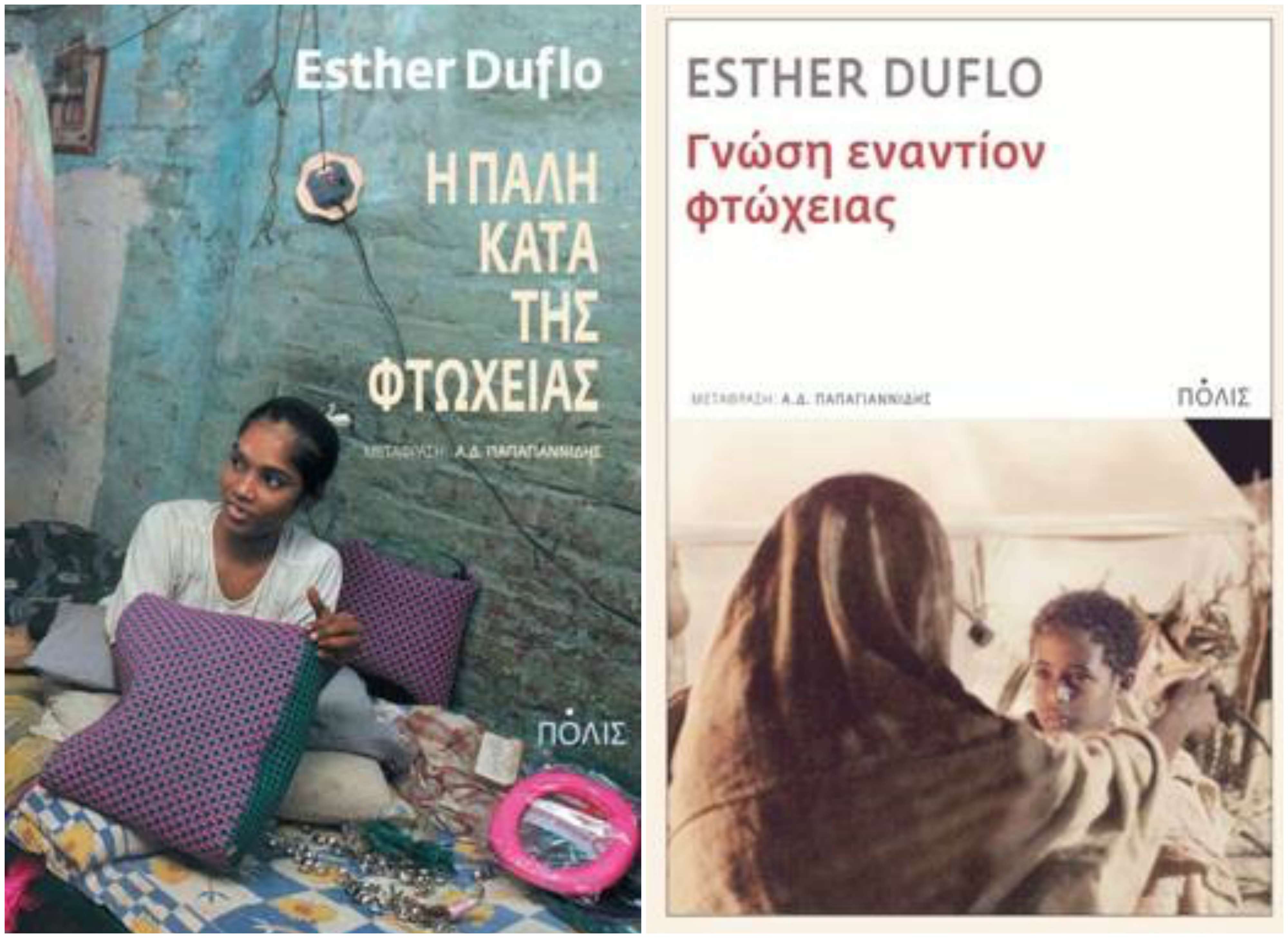 Δια χειρός Εστέρ Ντιφλό κυκλοφορούν στα ελληνικά από τις εκδόσεις Πόλις τα βιβλία της «Γνώση εναντίον φτώχειας» (μετάφραση: Α.Δ. Παπαγιαννίδης) και «Η πάλη κατά της φτώχειας» (μετάφραση-επίμετρο: Α.Δ. Παπαγιαννίδης).