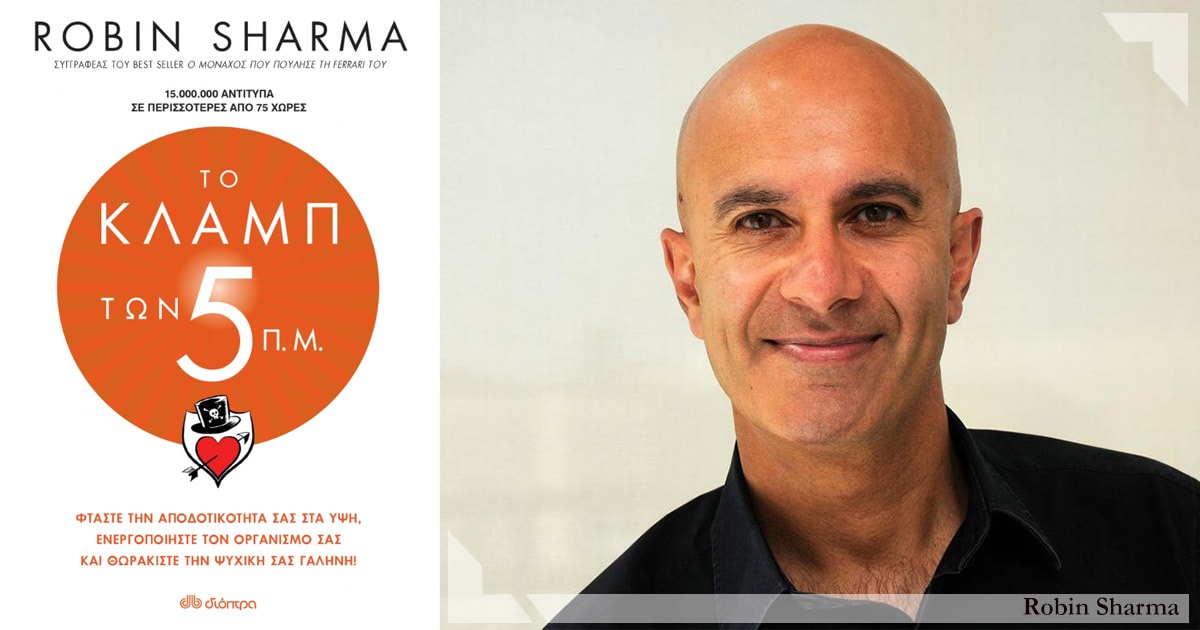 Η προσέγγιση του Sharma αναλύεται με ευρηματικό τρόπο, καθώς «Το Κλαμπ των 5 π.μ.» μεταφέρει τις ιδέες του υπό τη μορφή μυθιστορήματος. Δύο άνθρωποι που προσπαθούν να βάλουν τη ζωή τους σε τροχιά επιτυχίας θα συναντήσουν τον μέντορα, που θα τους φέρει στον σωστό δρόμο. Ακολούθησε τα βήματά τους, για να έρθεις πιο κοντά σε μια επιτυχημένη, πληρέστερη ζωή. Το βιβλίο κυκλοφόρησε το 2018 στα αγγλικά και τώρα μόλις στα ελληνικά από τις εκδόσεις Διόπτρα. Θα το βρεις άμεσα διαθέσιμο στα καταστήματα Public και στο public.gr!