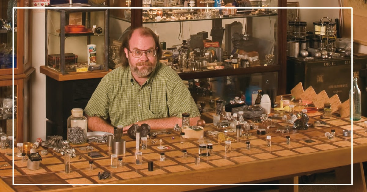 Από το 2002, λοιπόν, ξεκίνησε αυτήν την ιδιαίτερη συλλογή και γέμισε το σπίτι του με αντικείμενα που αντιπροσωπεύουν κάθε στοιχείο του οποίου η κατοχή δεν απαγορεύεται από τους φυσικούς ή τους ανθρώπινους νόμους. Φυσικά, για να αποθηκεύσει με ασφάλεια τα πολύτιμα ευρήματά του, χρειάζεται και ειδικές γνώσεις χημείας (π.χ. Νάτριο + υγρό υπόγειο = Μπαμ!). Οπότε, δεν είναι κάτι που μπορεί να κάνει ο καθένας. Ο καθένας, όμως, μπορεί να εισέλθει στον κόσμο των στοιχείων και των ιδιοτήτων τους, μέσα από το πιο πλήρες και οπτικά γοητευτικό πορτραίτο όλων των ατόμων του σύμπαντος.