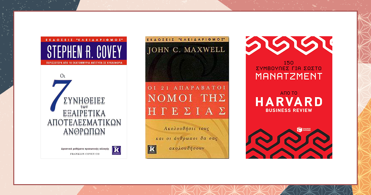 Για όλους τους επίδοξους ηγέτες, το βιβλίο “Οι 21 απαράβατοι νόμοι της ηγεσίας” θα σου δώσουν την πυξίδα για να γίνεις ηγέτης. Ακολούθησε τους νόμους αυτούς και οι άνθρωποι θα σε ακολουθήσουν! Για να γίνεις πιο αποτελεσματικός, όμως, θα πρέπει να αλλάξεις συνήθειες. Ποιες είναι οι συνήθειες των πιο αποτελεσματικών ανθρώπων; Διάβασε το “Οι 7 συνήθειες των εξαιρετικά αποτελεσματικών ανθρώπων” και ξεκίνα κι εσύ την πορεία σου στην αποτελεσματικότητα! Η σωστή διαχείριση, όμως, είναι εκ των ων ουκ άνευ. Μάθε σωστό μάνατζμεντ για να διαχειρίζεσαι με μεγαλύτερη αποτελεσματικότητα τις καταστάσεις που συναντάς στη ζωή σου. “150 συμβουλές για σωστό μάνατζμεντ” από το Harvard Business Review είναι το βιβλίο που θα πρέπει να γίνει ο οδηγός σου, είτε μιλάμε για την οργάνωση του χρόνου σου, είτε για θέματα του εργασιακού σου χώρου.