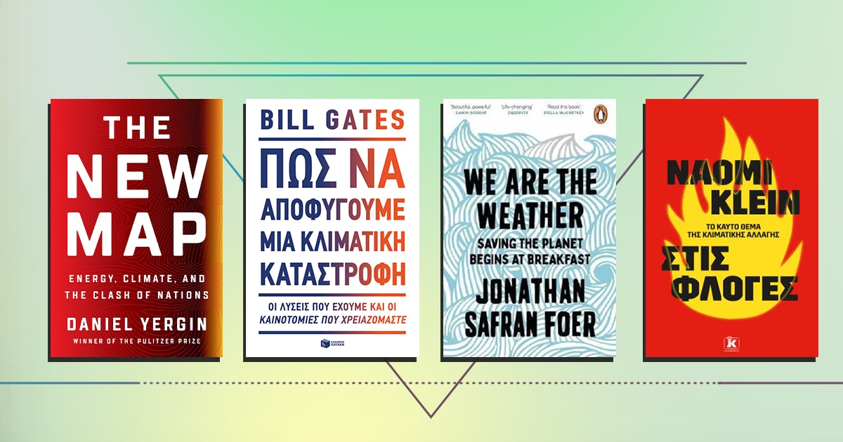 Είτε σε μικρό είτε σε μεγάλο βαθμό, όλοι επηρεάζουμε το κλίμα του πλανήτη. Ένας από τους πιο καθοριστικούς τρόπους είναι η διατροφή και στο βιβλίο «We are the Weather» του Jonathan Safran Foer αναλύεται σε βάθος η επίδραση που έχει η κρεατοφαγία στη Γη. Μια διαφορετική προσέγγιση στην κλιματική αλλαγή επιχειρεί το βιβλίο «The New Map» του Daniel Yergin. Ο αμερικανός συγγραφέας εστιάζει στο ρόλο της γεωπολιτικής πάνω στην κλιματική κρίση. Για την κλιματική αλλαγή έχει γράψει και ο David Attenborough. Ο δημοφιλής παρουσιαστής μιλά εδώ και χρόνια για τον πλανήτη μέσα από τα ντοκιμαντέρ και στο βιβλίο «A Life on Our Planet» μοιράζεται το όραμά του για το μέλλον, το πώς πρέπει η ανθρωπότητα να πορευτεί από εδώ και πέρα.