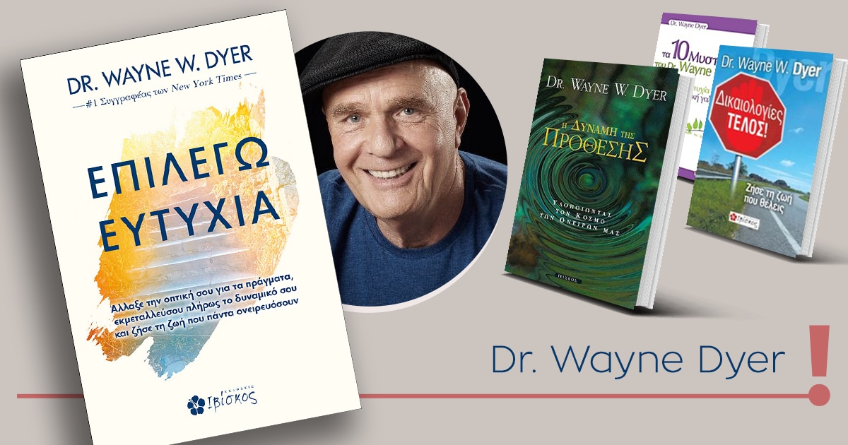 Από το 1976, όταν κυκλοφόρησε το πρώτο του έργο, μέχρι σήμερα, τα βιβλία του Wayne Dyer έχουν βοηθήσει εκατομμύρια ανθρώπους να βελτιώσουν τη ζωή τους. Ο διεθνώς καταξιωμένος ομιλητής, συγγραφέας και καθηγητής έφυγε από τη ζωή το 2015 αλλά το έργο του είναι ακόμα εδώ, για να καθοδηγήσει τους αναγνώστες. Το τελευταίο του βιβλίο είναι το «Επιλέγω ευτυχία», το οποίο μόλις κυκλοφόρησε μεταφρασμένο στα Eλληνικά από τις εκδόσεις Ιβίσκος.
