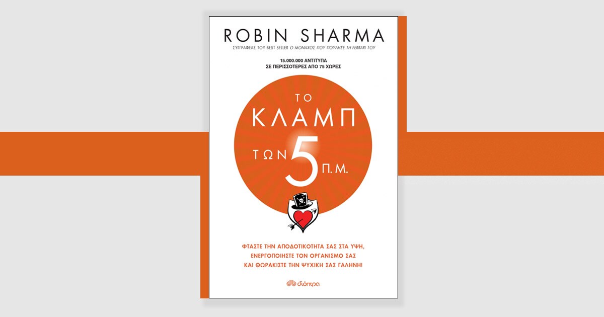 Με αφορμή την πρώτη live συζήτηση του καναδού συγγραφέα με το ελληνικό κοινό, το Public και οι εκδόσεις Διόπτρα ετοίμασαν έναν πολύ ξεχωριστό διαγωνισμό. Στη φόρμα που θα βρεις σε αυτόν τον σύνδεσμο, άφησε το αγαπημένο σου quote από οποιοδήποτε βιβλίο του Robin Sharma και πέντε (5) τυχεροί θα κερδίσουν μετά από κλήρωση ένα (1) αντίτυπο του βιβλίου «Το κλαμπ των 5 π.μ.». Οι νικητές θα ανακοινωθούν στο Public Blog στις 21 Δεκεμβρίου. Πολλαπλές συμμετοχές δεν θα λαμβάνονται υπόψιν.