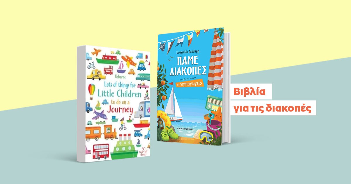 Ακόμα και τα παιδιά που τελείωσαν το Νηπιαγωγείο μπορούν να βρουν το δικό τους βιβλίο για τις φετινές διακοπές, το οποίο λέγεται (πώς αλλιώς;) «Πάμε Διακοπές για παιδιά που τελείωσαν το Νηπιαγωγείο». Επίσης μη ξεχνάς ότι το βιβλίο που θα χαρίσεις στα παιδιά δεν χρειάζεται να είναι στα Ελληνικά. Το φετινό καλοκαίρι μπορεί να είναι μια καλή ευκαιρία για τα παιδιά να έρθουν σε επαφή με τα Αγγλικά μέσα από το βιβλίο «Lots of Things for Little Children to do on a Journey».