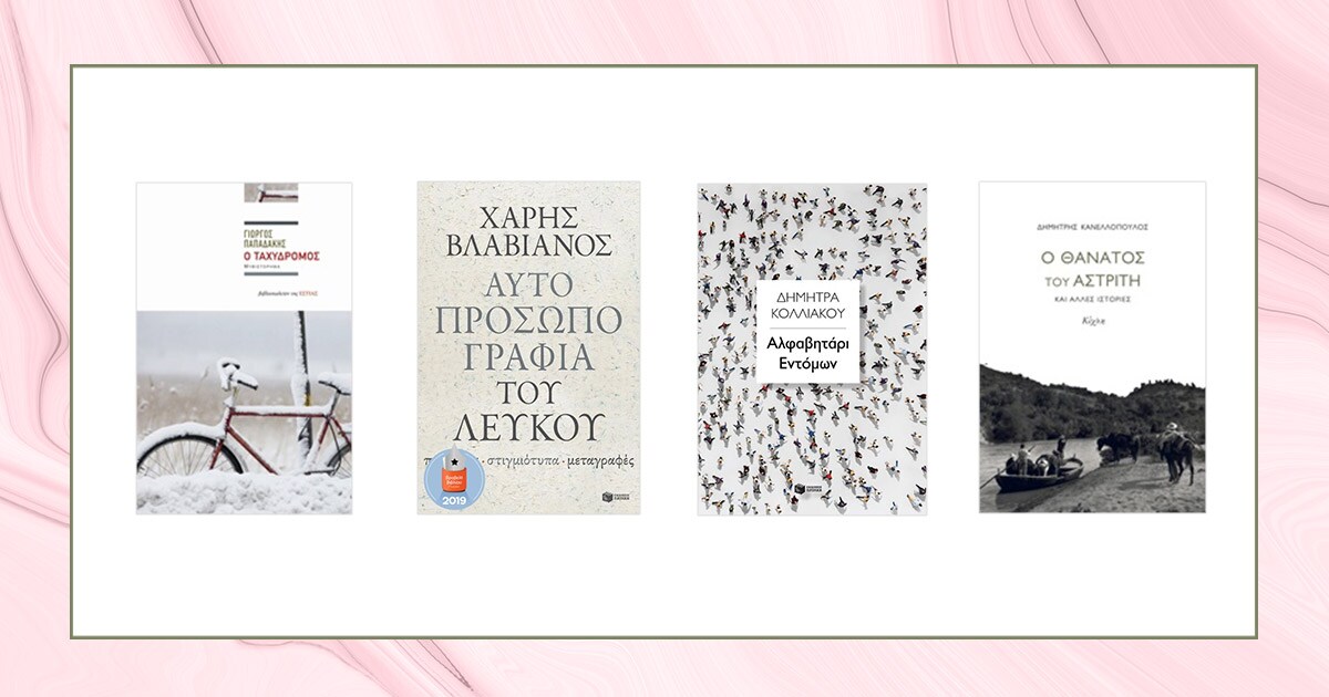 Το επόμενο βραβείο, αυτό του Διηγήματος-Νουβέλας, θα έχει δύο παραλήπτες για το 2019: Τη Δήμητρα Κολλιάκου για το «Αλφαβητάρι εντόμων» και τον Δημήτρη Κανελλόπουλο για το «Ο θάνατος του αστρίτη και άλλες ιστορίες». Η διήγηση του Δημήτρη Κανελλόπουλου εστιάζει στις αλλαγές που συμβαίνουν στην Ελλάδα από τη Μικρασιατική Καταστροφή έως και τη Μεταπολίτευση ενώ το «Αλφαβητάρι των εντόμων» εξετάζει τα μεγαλύτερα ζητήματα της Ευρώπης και του δυτικού ανθρώπου. Το Βραβείο Ποίησης για 2019 είναι και αυτό έντονα στοχαστικό, καθώς κατέληξε στο Χάρη Βλαβιανό, για τη συλλογή «Αυτοπροσωπογραφία του λευκού».