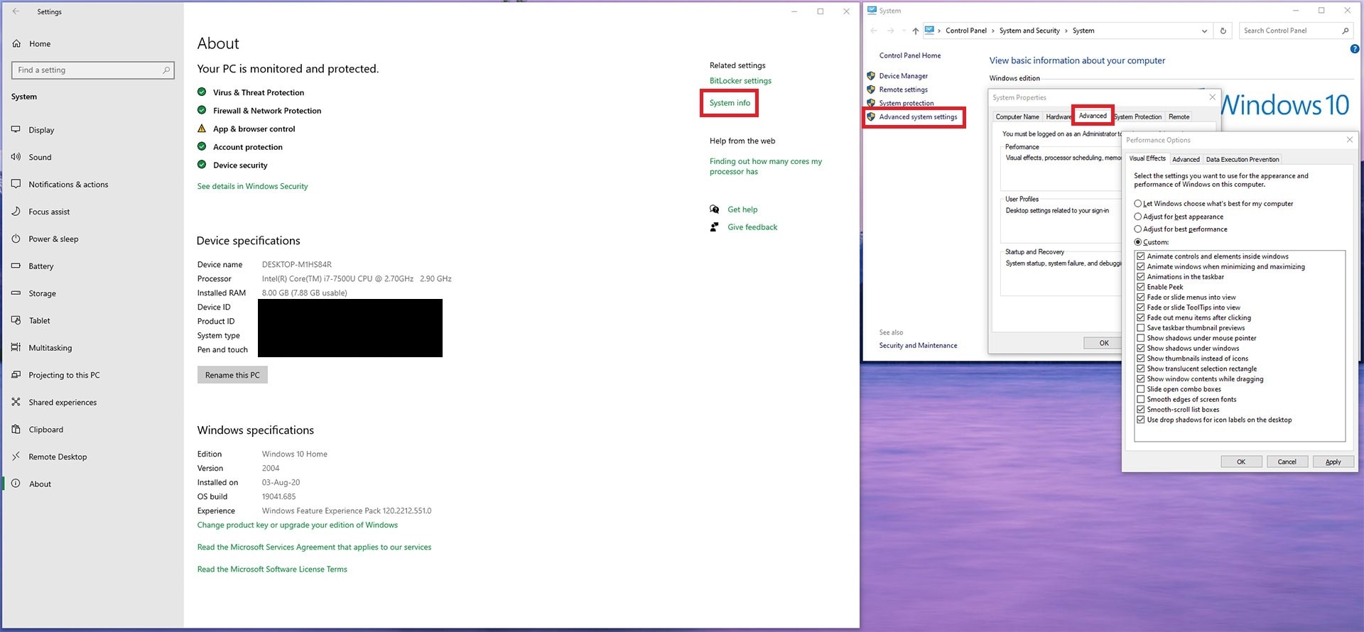 Τι είναι το eye-candy; Είναι… όλα αυτά τα εφέ και τα... κόλπα που έχουν τα Windows για να φαίνονται πιο όμορφα. Για παράδειγμα, το εφέ ελαχιστοποίησης που μικραίνει το μέγεθος ενός παραθύρου, ενώ ταυτοχρόνως κάνει fade-out ή το αντίστροφο όταν το ξανα-ανοίγεις, τα animations σε μπάρες προόδου ή οι διαφάνειες και οι περίτεχνες σκιάσεις. Όλα αυτά μπορεί να είναι ωραία να τα βλέπεις, επιβαρύνουν, όμως, τον υπολογιστή και μειώνουν την ταχύτητά του. Μπορείς να τα απενεργοποιήσεις. Το παράθυρο με τις ρυθμίσεις είναι σχετικά κρυμμένο, όμως. Για αρχή, κάνε δεξί κλικ στο Start button και επέλεξε System. Στα δεξιά θα δεις την επιλογή System Info. Στο νέο παράθυρο κάνε κλικ στην επιλογή Advanced System Settings. Σε αυτό το παράθυρο, στο tab Advanced και στην περιοχή Performance πάτα το πλήκτρο Settings. Εκεί, στο tab Visual Effects, θα βρεις όλα τα εφέ τα οποία μπορείς να απενεργοποιήσεις ή απλώς να επιλέξεις το Adjust for best performance.