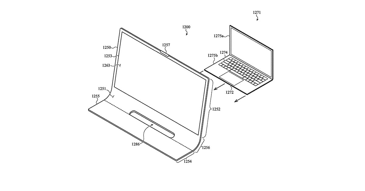 Η εν λόγω πατέντα πάει το concept ακόμα παραπέρα, καθώς η Apple σκέφτεται ότι η κυρτή επιφάνεια θα μπορούσε να στεγάσει και ένα MacBook στη βάση της, έτσι ώστε το laptop να μετατρέπεται σε σταθερό υπολογιστή απλά «κουμπώνοντας» τον φορητό στη βάση. Το κάτω μέρος αυτού του φουτουριστικού concept iMac θα μπορούσε ακόμα και να διπλώνει, για να μπορεί κάποιος να μειώνει το χώρο που πιάνει η συσκευή, όταν δεν χρησιμοποιείται.