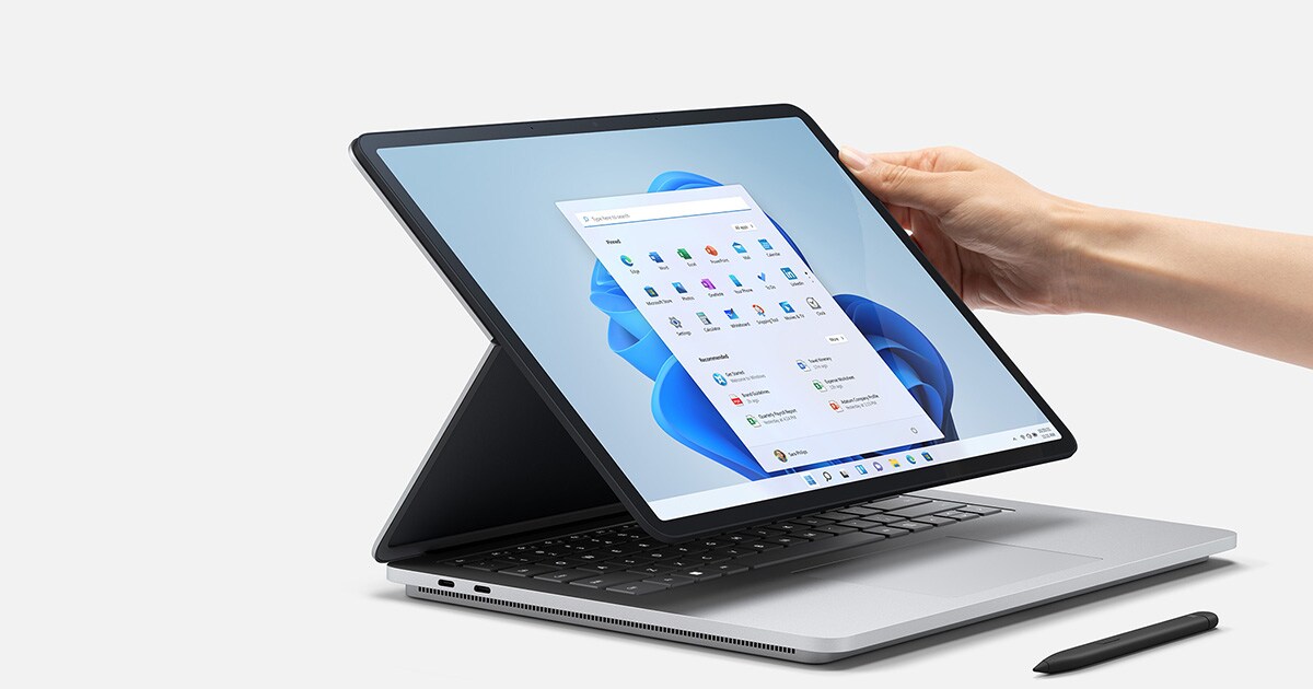 Η συσκευή έκπληξη του event ήταν το Surface Laptop Studio. Ο νέος φορητός υπολογιστής από τη Microsoft είναι σαν να φέρνει το Surface Studio desktop σε laptop μορφή. Η οθόνη είναι ανακλινόμενη μέσω ενώ βραχίονα στο πίσω μέρος που σου επιτρέπει να την φέρεις μπροστά σου, πάνω από το πληκτρολόγιο, σε διάφορες γωνίες για να σχεδιάσεις σε αυτή. Η οθόνη είναι touch screen με διαγώνιο 14,4ʺ, υψηλή ανάλυση 2400×1600 και ρυθμό ανανέωσης 120Hz.