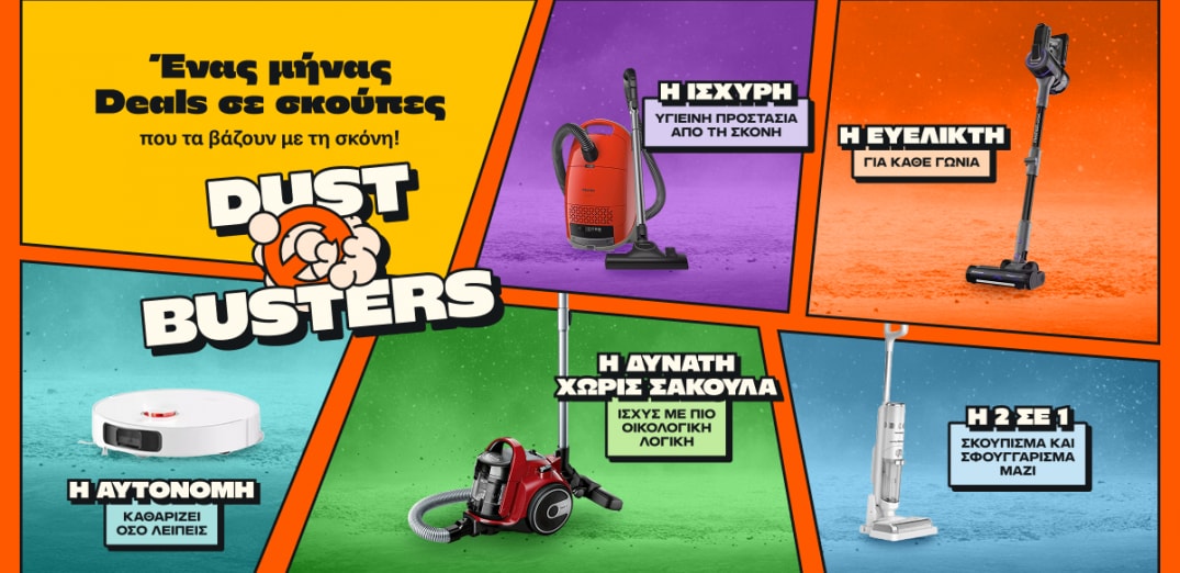 Περίληψη: Οι Dust Busters παίρνουν θέση στα ράφια και μαζί τους φέρνουν έναν μήνα προσφορών για να αποκτήσεις τη σκούπα που χρειάζεσαι για το καθημερινό σκούπισμα!