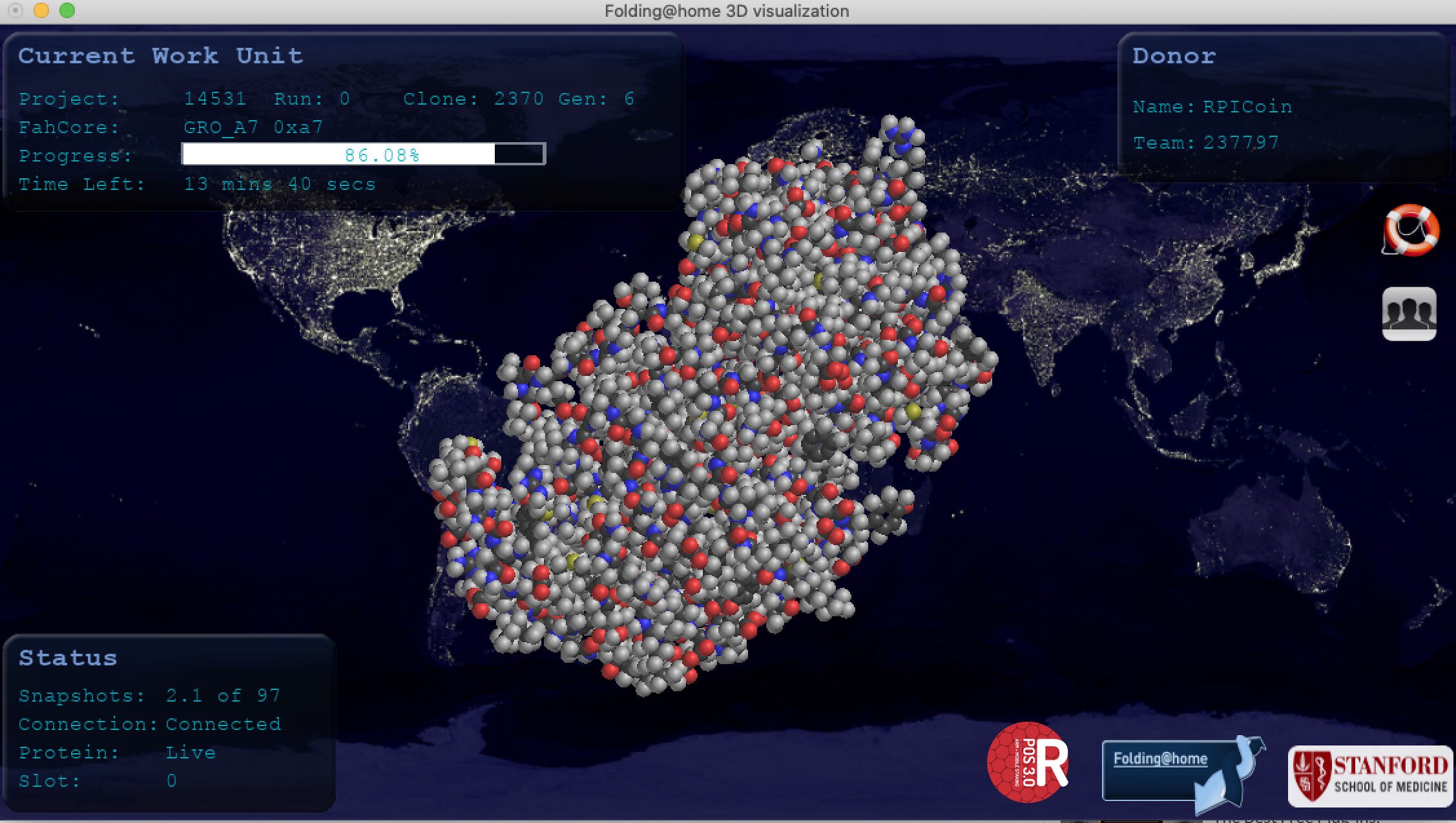 Τώρα, όμως, υπάρχει ένας απτός «εχθρός»: ο κορονοϊός, γνωστός και ως Covid-19 ή SARS-CoV-2. Οι υπεύθυνοι του προγράμματος Folding@home δημιούργησαν μοντέλα των πρωτεϊνών που βρίσκονται στον ιό SARS-CoV-2 και τα αναλύουν! Και μπορείς κι εσύ να βοηθήσεις, εγκαθιστώντας στον υπολογιστή σου το κατάλληλο πρόγραμμα!
