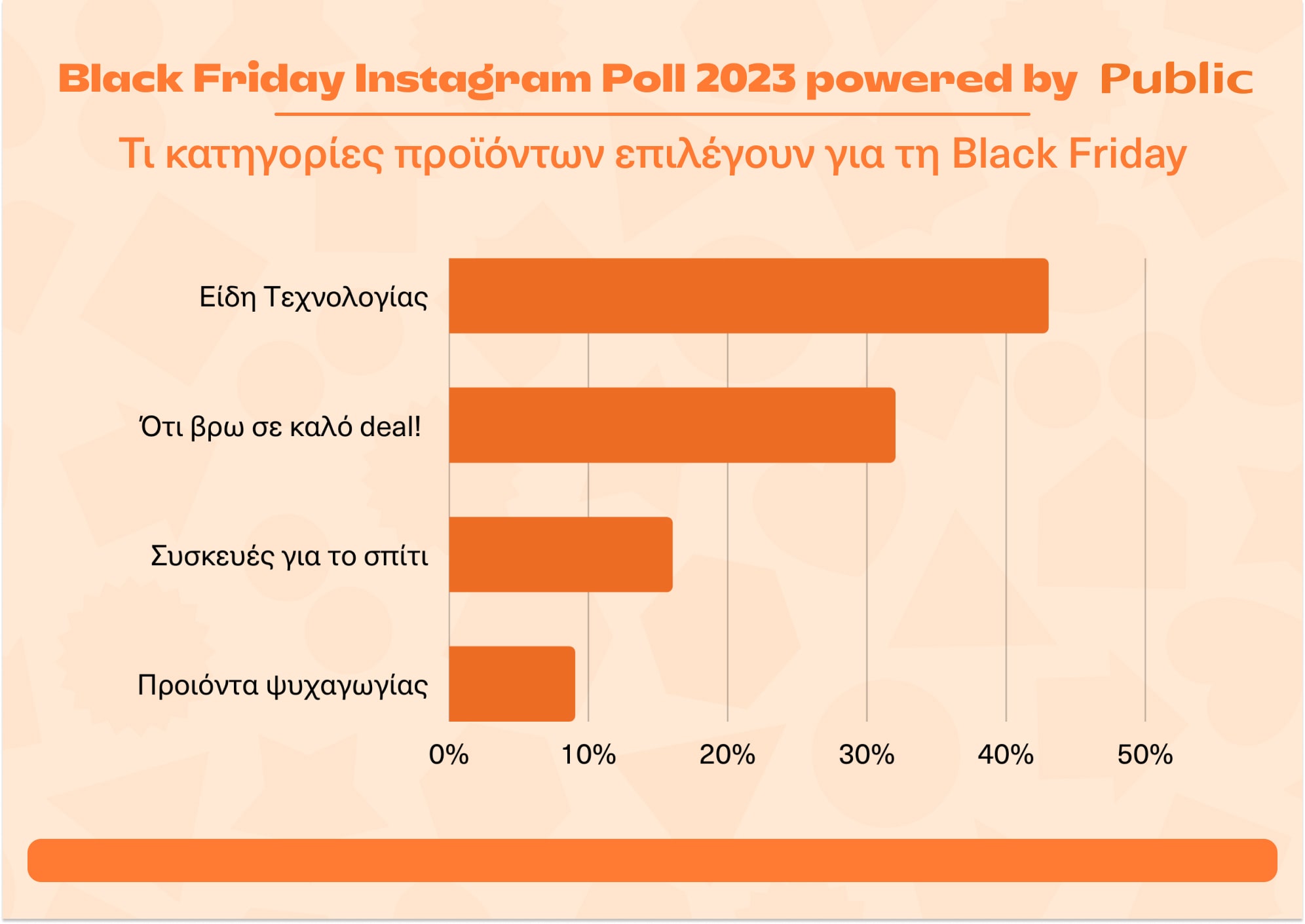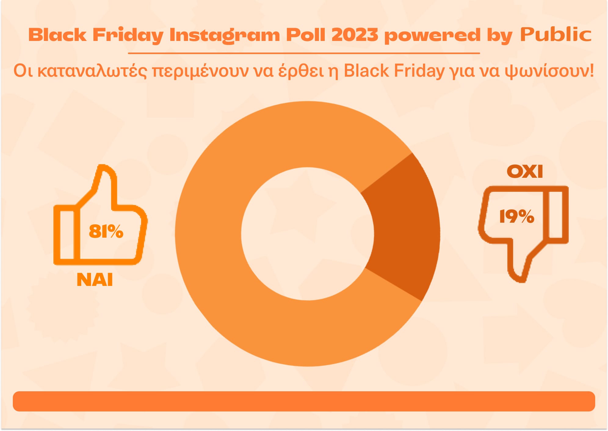 Φέτος, παράλληλα με την έρευνα που έτρεξε το Public Group σχετικά με την περσινή Black Friday, οι χρήστες του Instagram είχαν την ευκαιρία να συμμετέχουν σε ένα διασκεδαστικό poll που δημιουργήσαμε στο IG προφίλ μας.