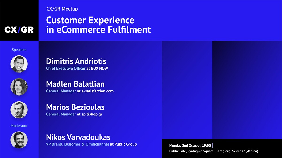 Περίληψη: Το 3ο meetup του Customer Experience Greece community έρχεται στο Public Café Συντάγματος με θέμα το Customer Experience στο eCommerce Fulfilment.