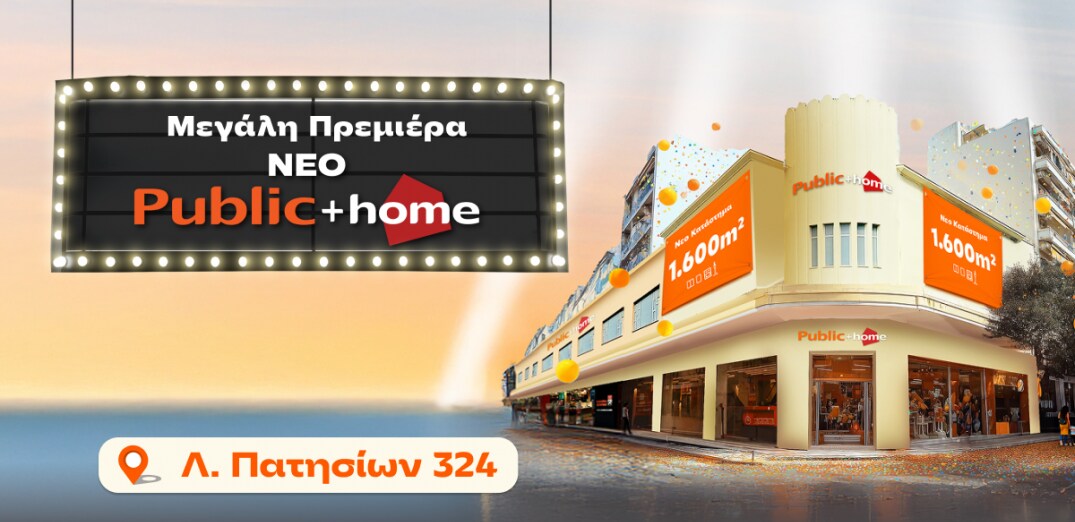 Το καινούριο κατάστημα θα το βρεις στη Λεωφόρο Πατησίων 324. Να σημειώσουμε πως το νέο τριώροφο κατάστημα είναι το 8ο “Public + home” που ανοίγει στην Αττική. Σε ένα μεγάλο χώρο 1.700 τ.μ. φιλοξενούνται τα κορυφαία brands οικιακών συσκευών και μικροσυσκευών για να απολαμβάνεις ξέγνοιαστα και ξεκούραστα το χρόνο που περνάς στο σπίτι. Από ψυγειοκαταψύκτες τελευταίας τεχνολογίας μέχρι ηλεκτρικές σκούπες, ατμοσίδερα, καφετιέρες και air fryers, όλες οι must have συσκευές του σπιτιού «παίζουν» εδώ. Εδώ θα βρεις επίσης κορυφαίες προτάσεις προσωπικής φροντίδας για να κάνεις πράξη το ευ ζην. Τα προϊόντα τεχνολογίας φροντίζουν για την ψυχαγωγία σου, γι’ αυτό και δε θα μπορούσαν να λείπουν από τα ράφια. Τηλεοράσεις, smartphones, υπολογιστές, κονσόλες, μαζί με όλα τα απαραίτητα αξεσουάρ, έχουν βρει το νέο τους σπίτι στο κατάστημα της Πατησίων, για να βρεις στα σίγουρα αυτό που ψάχνεις.