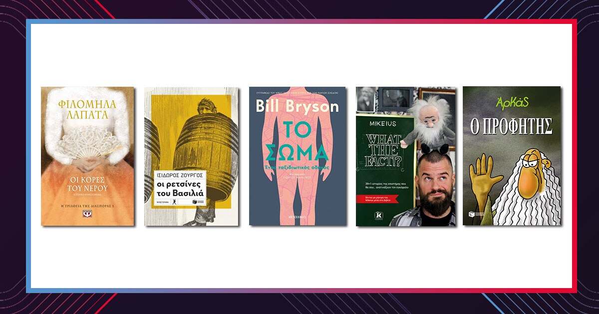Περνάμε τώρα στην ελληνική λογοτεχνία και τη Φιλομήλα Λαπατά. «Οι κόρες του νερού» είναι ένα ιστορικό μυθιστόρημα που ασχολείται με τον απόδημο ελληνισμό και είναι το πρώτο βιβλίο σε μια τριλογία γύρω από το ίδιο θέμα. Την μετανάστευση των Ελλήνων επηρέασε σημαντικά και η οικονομική κρίση. Στην περίοδο της κρίσης εκτυλίσσονται τα γεγονότα του νέου βιβλίου «Οι ρετσίνες του βασιλιά» από τον Ισίδωρο Ζουργό, το οποίο κυκλοφορεί σύντομα και μπορείς να προπαραγγείλεις. Σε πιο ελαφρύ κλίμα κινείται «Ο προφήτης» του Αρκά, χωρίς όμως να λείπει το καυστικό χιούμορ που έχει γίνει σήμα κατατεθέν του.