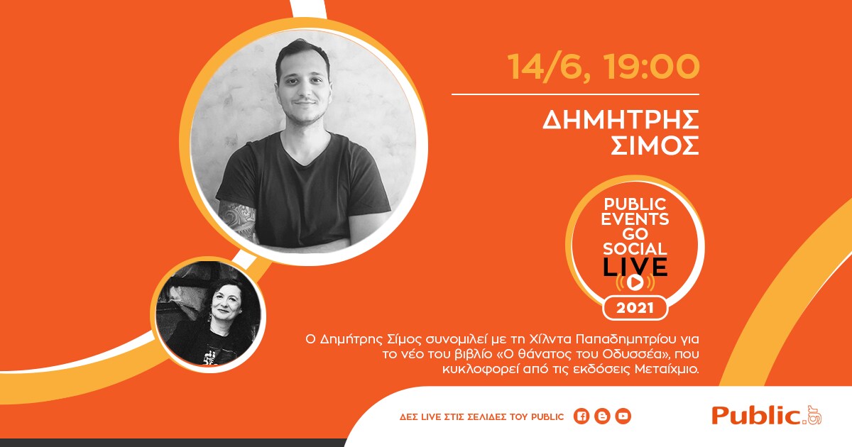 Το Public και οι εκδόσεις Μεταίχμιο σας προσκαλούν, τη Δευτέρα 14/6 στις 19:00, στη διαδικτυακή παρουσίαση του νέου βιβλίου του Δημήτρη Σίμου «Ο θάνατος του Οδυσσέα» . Μαζί του θα συνομιλήσει η Χίλντα Παπαδημητρίου.