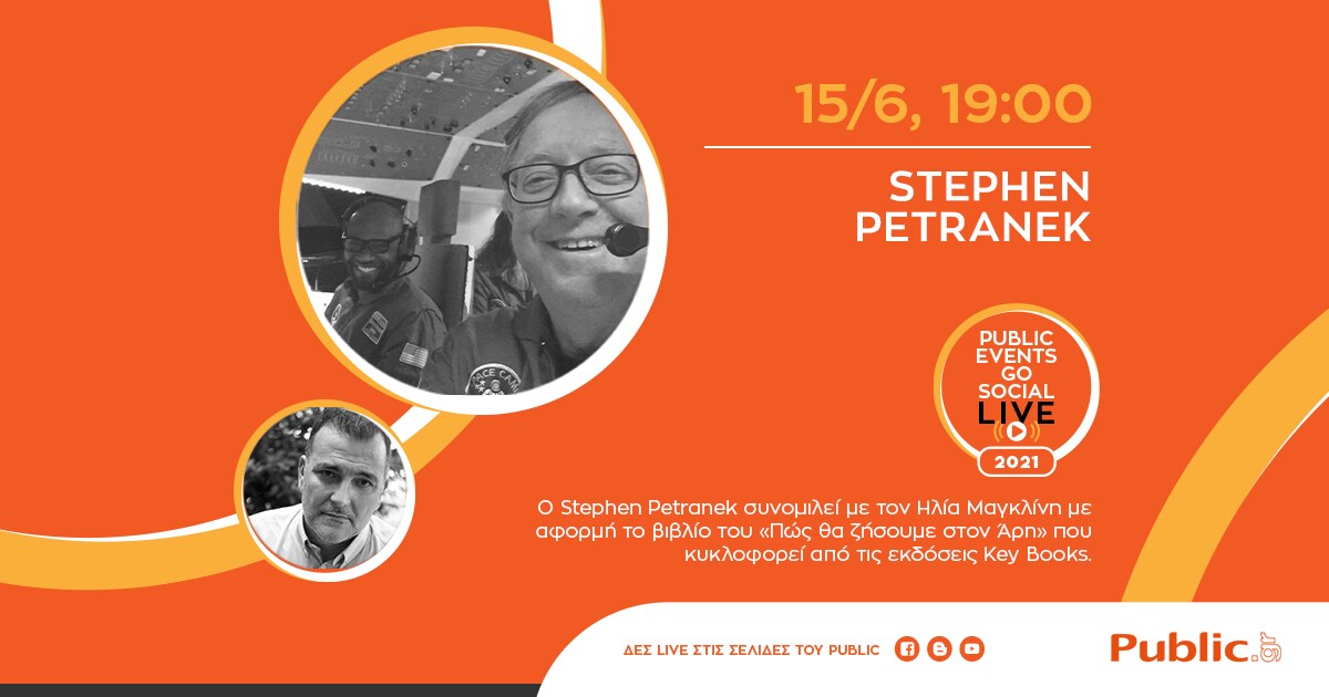 Το Public και οι εκδόσεις Key Books σας προσκαλούν, την Τρίτη 15/6 στις 19:00, σε μια διαδικτυακή παρουσίαση του βιβλίου «Πώς θα ζήσουμε στον Άρη» του Stephen Petranek. Με τον συγγραφέα θα συνομιλήσει ο δημοσιογράφος και συγγραφέας Ηλίας Μαγκλίνης.