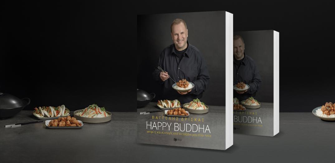 Έπειτα από διεξοδική έρευνα, πολύ διάβασμα και δοκιμάζοντας την αυθεντική ασιατική κουζίνα, γεννήθηκε από τον Βαγγέλη Δρίσκα ένα μοναδικό βιβλίων συνταγών που περιλαμβάνει τα πιο νόστιμα και σπουδαία πιάτα της Ασίας. Κάθε σελίδα του βιβλίου «Happy Buddha» κρύβει τις καλύτερες και τις πιο χαρακτηριστικές συνταγές κάθε τόπου, από την Κίνα μέχρι την Ινδονησία, όπου ταξίδεψε ο σεφ. Οι συνταγές αυτές, γραμμένες αναλυτικά, καθιστούν τις σύνθετες γαστρονομικές ασιατικές αποχρώσεις προσιτές στο δυτικό κοινό και σίγουρα θα σε βοηθήσουν να έχεις το τέλειο αποτέλεσμα στο πιάτο σου. Δεν είναι τυχαίο άλλωστε το γεγονός ότι το βιβλίο απέσπασε τον τίτλο «Best of the Best» στην κατηγορία Asian Food Culture στον διαγωνισμό Gourmand World Cookbook Awards, που θεωρούνται τα «Όσκαρ» του γαστρονομικού κόσμου. Όσο για τον τίτλο του βιβλίου, ο σεφ τον εμπνεύστηκε από μια προσωπική του εμπειρία στο Μπαλί, εκεί όπου, περπατώντας στον δρόμο, πολλοί́ τον σταματούσαν και του χάιδευαν την κοιλιά αναφωνώντας: «Happy Buddha!». Όπως εξομολογείται ο ίδιος, «εκεί́ πιστεύουν ότι µια τροφαντή κοιλιά υπόσχεται πλούτο και ευημερία, που θα τα αποκτήσεις εφόσον τη χαϊδέψεις».
