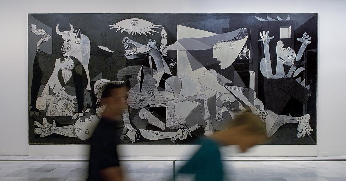 Η πιο αναγνωρίσιμη δημιουργία του Pablo Picasso, όμως, δεν ανήκει σε καμία από τις παραπάνω κατηγορίες. Το 1937 θα ζωγράφιζε τη Guernica, τον πίνακα που απεικόνιζε τη φρικαλεότητα που ακολούθησε του βομβαρδισμού της Βασκικής πόλης κατά τη διάρκεια του Ισπανικού Εμφυλίου Πολέμου. Το έργο ολοκληρώθηκε όσο ο Picasso ήταν στο Παρίσι και για να εκτεθεί σε Ισπανικό έδαφος θα έπρεπε να περάσουν πολλά χρόνια. Η επιθυμία του Picasso ήταν η Guernica να μεταφερθεί στην Ισπανία μόνο όταν η χώρα θα έχει δημοκρατική κυβέρνηση. Ο Δεύτερος Παγκόσμιος Πόλεμος, το καθεστώς του Φράνκο και το γενικότερο έκρυθμο σκηνικό της εποχής οδήγησαν το Picasso σε πιο ενεργό πολιτικό ρόλο τα επόμενα χρόνια.