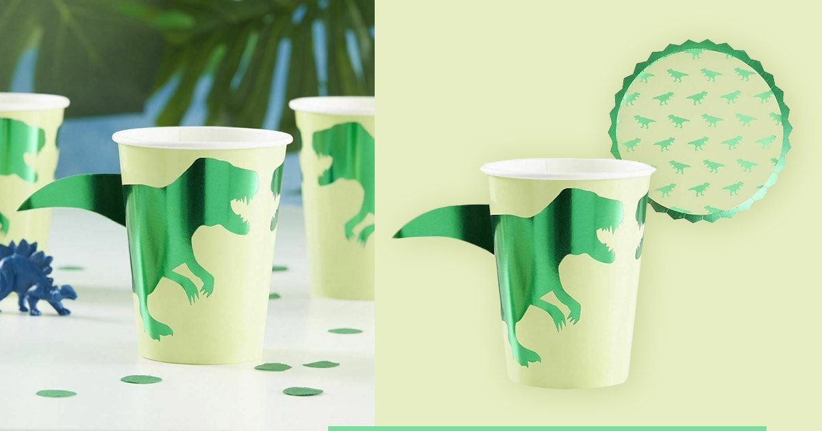 Εμείς έχουμε αδυναμία στα σχέδια της Ginger Ray, που εντυπωσιάζουν μικρούς και μεγάλους. Για τα αγόρια, που συνήθως αγαπούν τέρατα και δεινόσαυρους, ρίχτε μια ματιά στα χάρτινα πιατάκια roar και τα αντίστοιχα ποτηράκια. Και τα δύο έχουν χρωματιστά σχέδια ενώ τα ποτήρια έχουν και... ουρά!