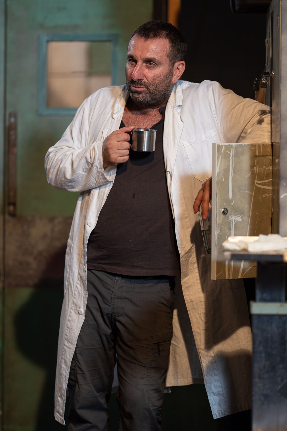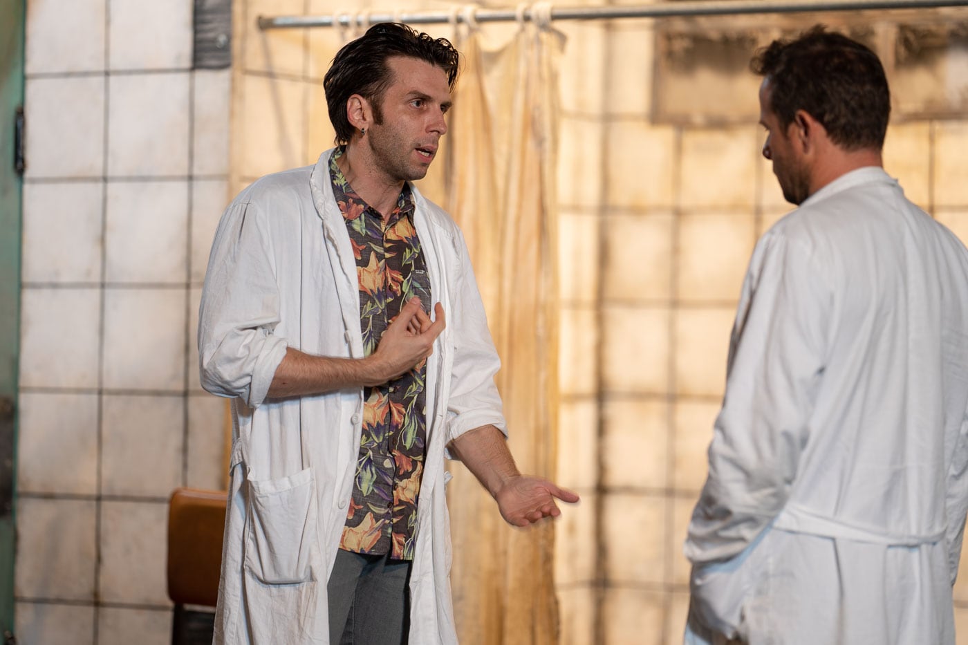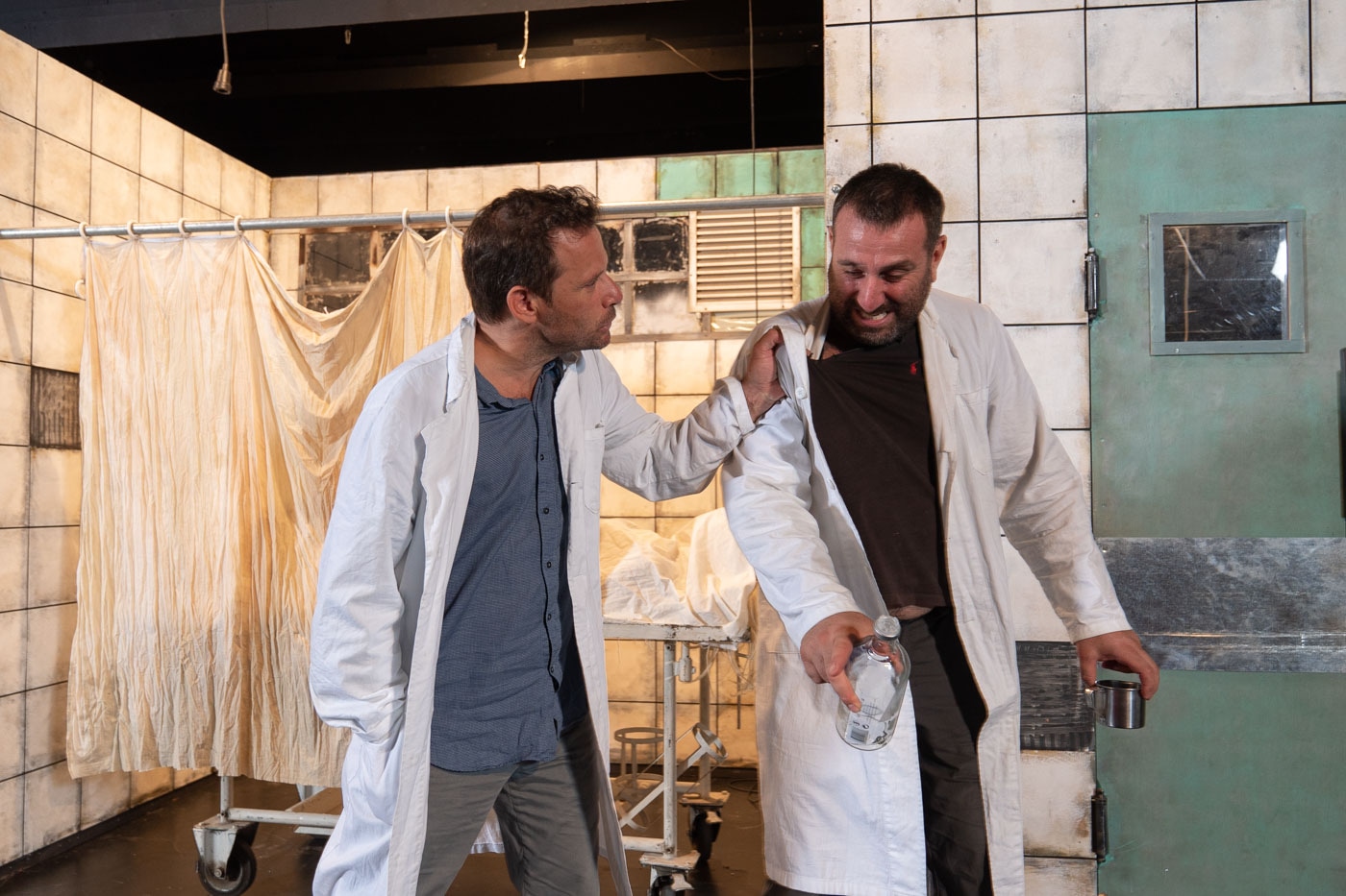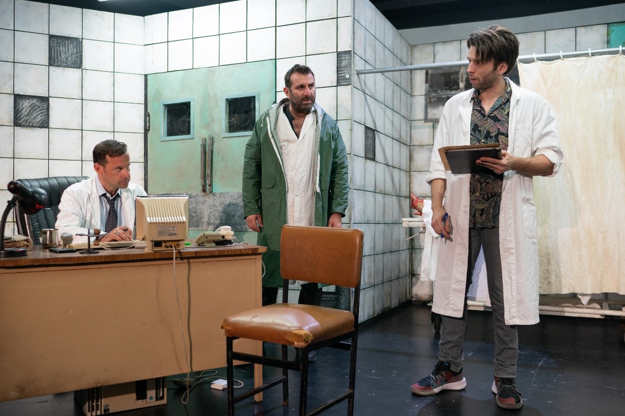 Τα «Αξύριστα Πηγούνια» του Γιάννη Τσίρου ξεκινούν και τελειώνουν στην πτέρυγα ενός νεκροτομείου. Συζητήσεις, εντάσεις, μερικά γέλια, αρκετά κλάματα και μια σταθερή ψυχρή ατμόσφαιρα που όσα ρούχα και αν φοράς, όση θέρμανση και αν έχει το θέατρο Μικρό Χορν δεν πρόκειται ποτέ να ζεσταθείς μέσα σου. Σε όλη τη διάρκεια του έργου, μέχρι και στο χειροκρότημα υπάρχει αυτή η ψύχρα, αυτή η αίσθηση του «κάτι έχει γίνει λάθος» ή μάλλον κάποιος, όλο αυτό «το έχει κάνει να φαίνεται σαν σωστό».