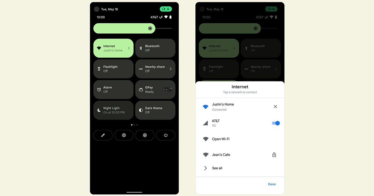 Ένα ακόμα χαρακτηριστικό ιδιωτικότητας είναι οι ενδείξεις χρήσης μικρόφωνου και κάμερας. Η ένδειξη αυτή έχει πράσινο χρώμα και εμφανίζει επάνω δεξιά, όταν ένα app χρησιμοποιεί την κάμερα ή το μικρόφωνο. Αυτό το χαρακτηριστικό σου δίνει τη δυνατότητα να καταλαβαίνεις σε πραγματικό χρόνο πότε ένα app χρησιμοποιεί τα δύο αυτά χαρακτηριστικά. Αν η χρήση δεν είναι ενδεδειγμένη, τότε μπορείς εύκολα να ανακαλέσεις τις σχετικές άδειες χρήσης. Στα quick settings επίσης θα βρεις ένα πλήκτρο πλήρους απενεργοποίησης της πρόσβασης στο μικρόφωνο και την κάμερα από όλες τις εφαρμογές.