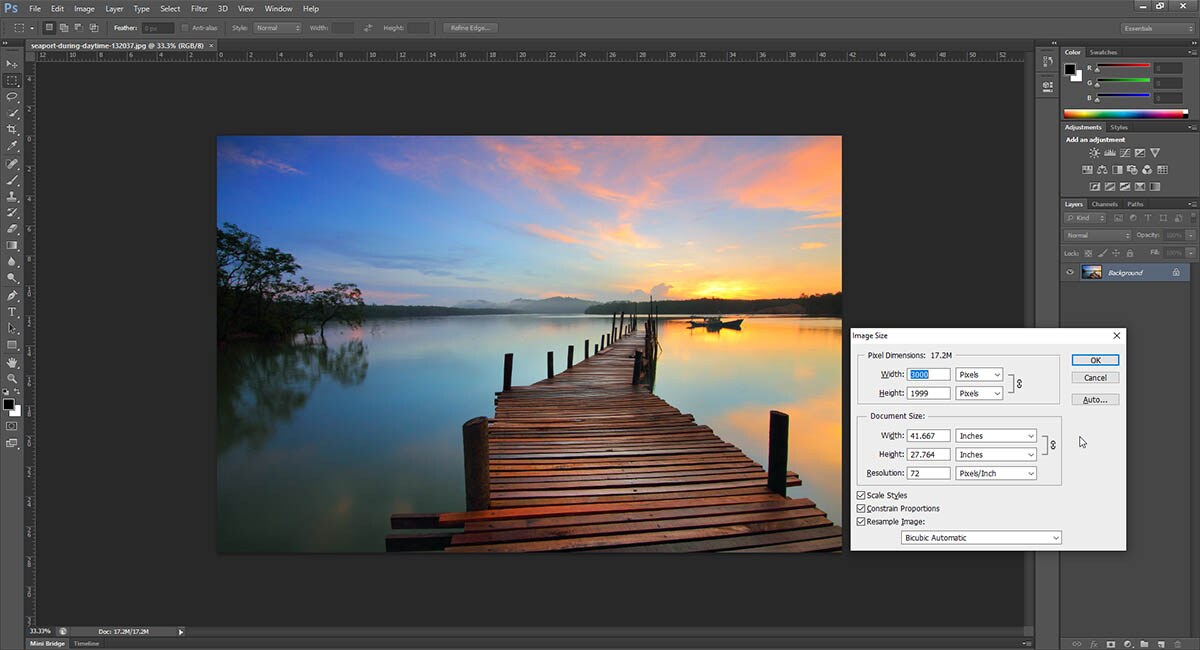 Αφού, λοιπόν, ξέρουμε τι θέλουμε να πετύχουμε, πάμε να δούμε και τον τρόπο που θα φτάσουμε στο επιθυμητό αποτέλεσμα. Ξεκινάμε από τα βασικά: το μέγεθος της εικόνας. Το μέγιστο μέγεθος που μπορεί να έχει μια φωτογραφία που θα ανεβάσεις στο Instagram είναι 1080 (πλάτος) × 1350 (ύψος). Αυτό σημαίνει πως μια φωτογραφία, για να χωριστεί απρόσκοπτα σε δύο, θα πρέπει να έχει αρχικό μέγεθος 2160×1350 ή 3240×1350, αν μιλάμε για κόψιμο σε τρία κομμάτια. Αν δεν κατάλαβες τι ακριβώς εννοούμε, πάνε να δούμε και στην πράξη τον τρόπο ανοίγοντας το Photoshop.