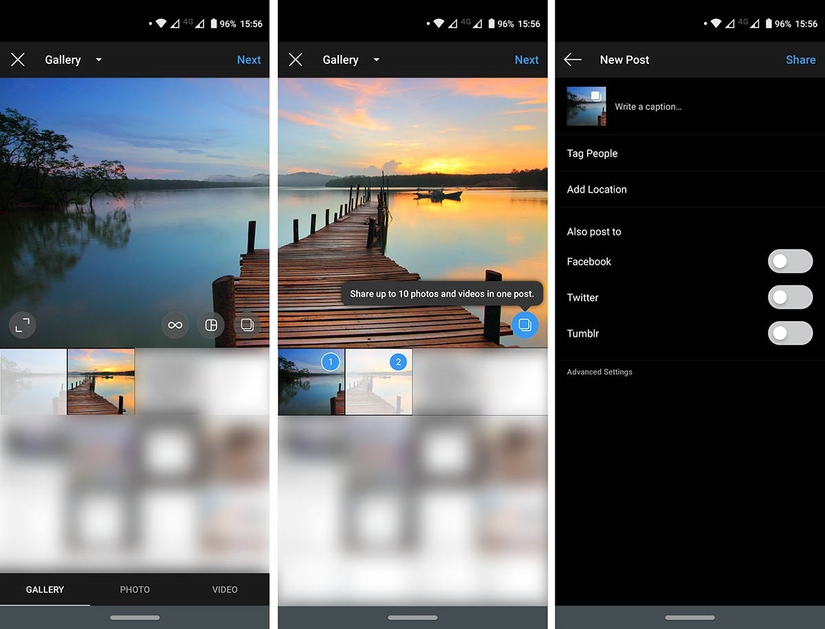 Πέρασε, λοιπόν, τις δύο εικόνες στο smartphone σου, άνοιξε την εφαρμογή και ξεκίνα το ανέβασμα ενός νέου post. Σε αυτό το σημείο πρέπει να πατήσεις την επιλογή για πολλαπλό ανέβασμα και να επιλέξεις τις δύο εικόνες που πέρασες στο κινητό σου. Μη ξεχάσεις πως πρέπει να τις επιλέξεις με τη σωστή σειρά, για να εμφανιστούν όπως θέλεις. Το έκανες; Τέλεια! Βάλε τώρα το caption και τα hashtag που θες και ανέβασε το post. Όπως θα δεις, μπορείς να κάνεις swipe τις εικόνες δεξιά-αριστερά και δεν φαίνεται πουθενά κανένα κενό. Η εικόνα συνεχίζεται απρόσκοπτα η μία μετά την άλλη!