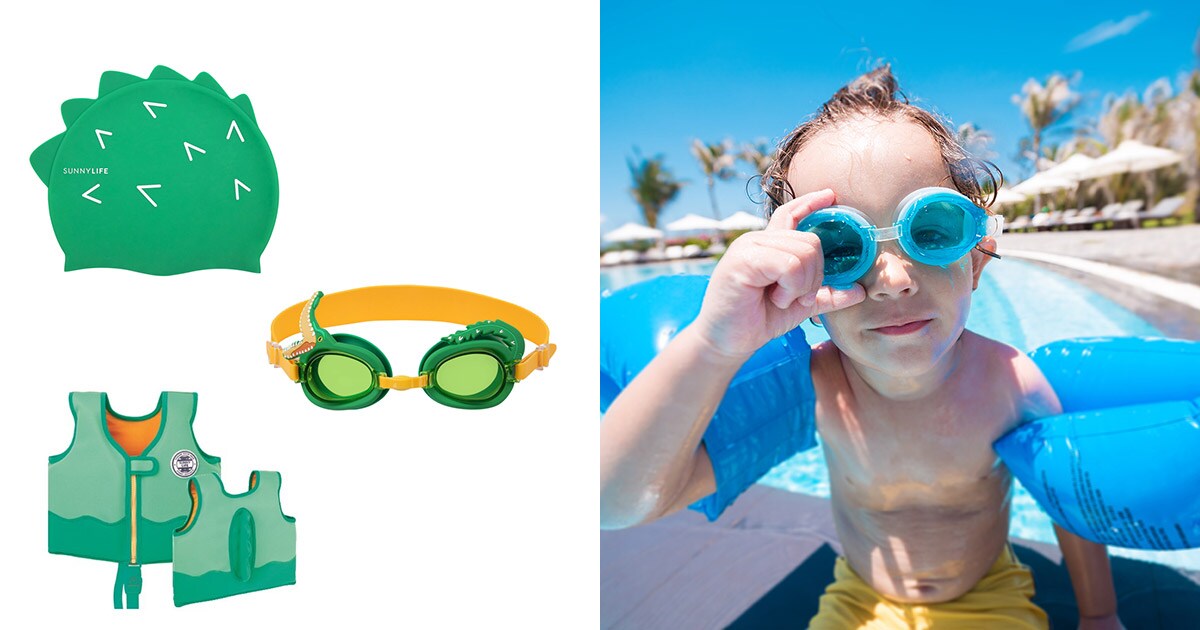 Περίληψη: Διαλέγουμε τα πιο στυλάτα σκουφάκια, γυαλιά και γιλέκα κολύμβησης για τους μικρούς και τις μικρές, που φέτος θα κάνουν τις πρώτες τους βουτιές!